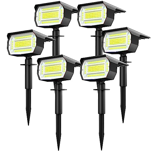 Lot de 6 Spot Solaire Exterieur, 72 LED Lampe Solaire Exterieur Etanche IP65 Lumiere Solaire Exterieur, Réglable avec 3 Modes d'Éclairage Extérieur Solaire pour Jardin Cour Allée Chemin, Blanc Froid