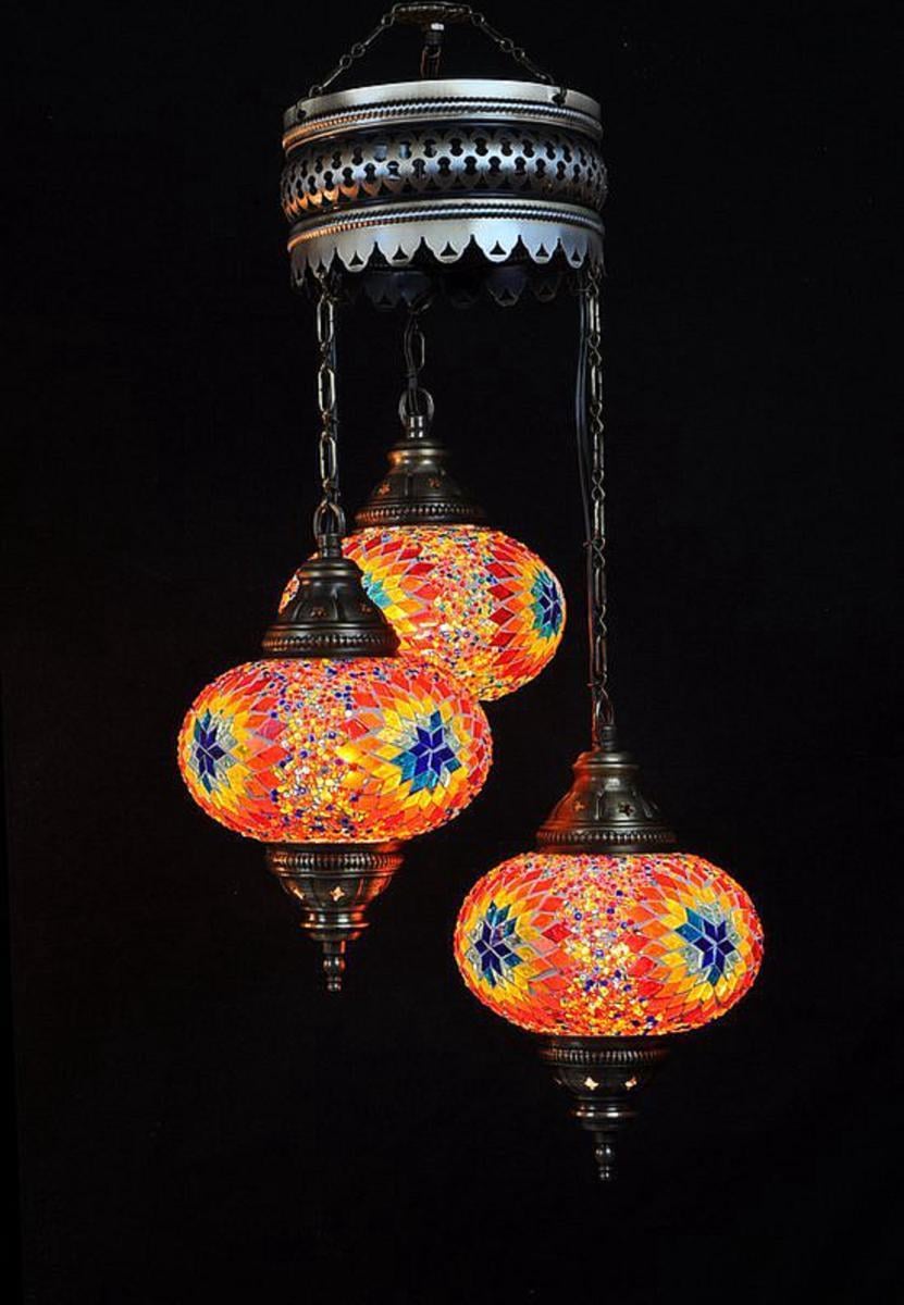 Lampadaire turc en mosaïque - Lampe marocaine faite main avec 3 bulbes multicolores - Hauteur 100 cm