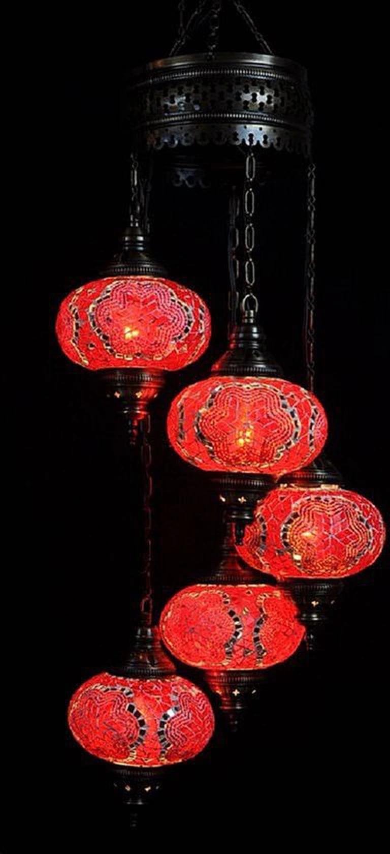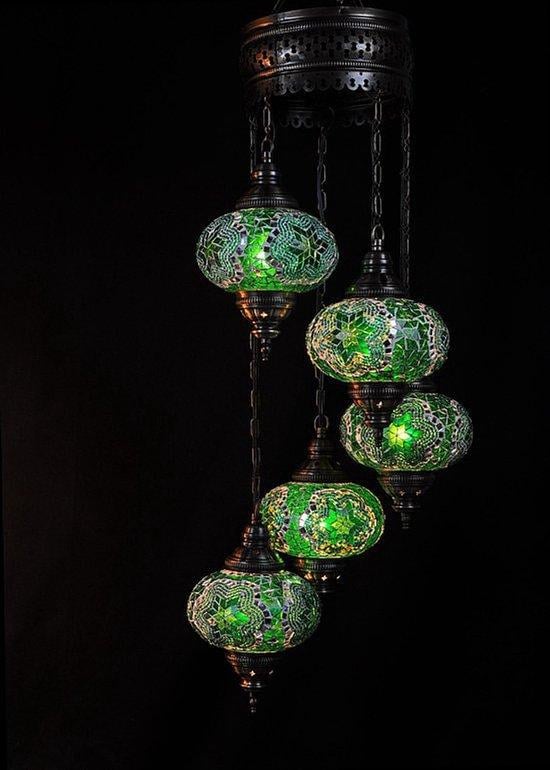 Lampadaire mosaïque turque - Lampe marocaine faite main avec 5 boules orange - Authentique et unique