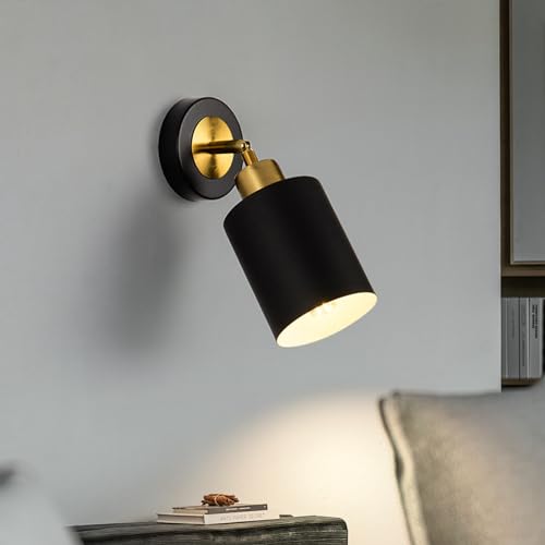 CRFASIBE Applique Murale Interieur, Industrielle 360° Rotatif Lampe Murale de Chevet Liseuse, Applique Murale Sans Fil pour Chambre Salon(Noir)
