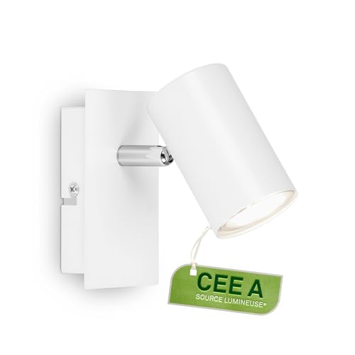 BRILONER - Applique LED intérieure, CEE A source lumineuse, orientable, 3000K blanc chaud, 2W 450 lumens, lampe lecture murale, éclairage salon, cuisine, couloir, chambre, blanc