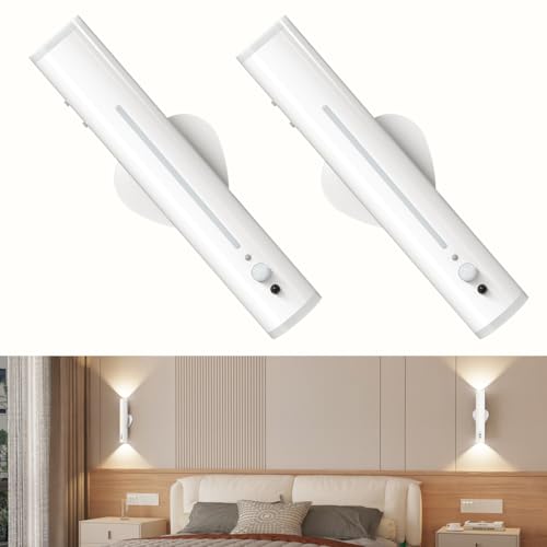 Applique Murale avec Détecteur de Mouvement, 6W Lampe Murale Sans Fil Rechargeable USB, Appliques Murales Intérieur a Batterie 3600mAh Blanc Chaud 3000K Magnétique pour Bedroom Couloir Escalier, Blanc