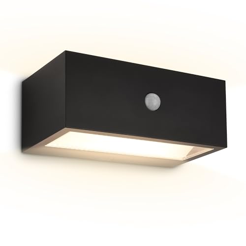 BRILONER - Applique murale extérieure avec détecteur de mouvement, sans fil et dimmable, IP44, USB-C, lumière 3000 K avec mémoire, lampe murale sans fil, lampe exterieure, 18,5 x 9,5 x 7,5 cm, noir