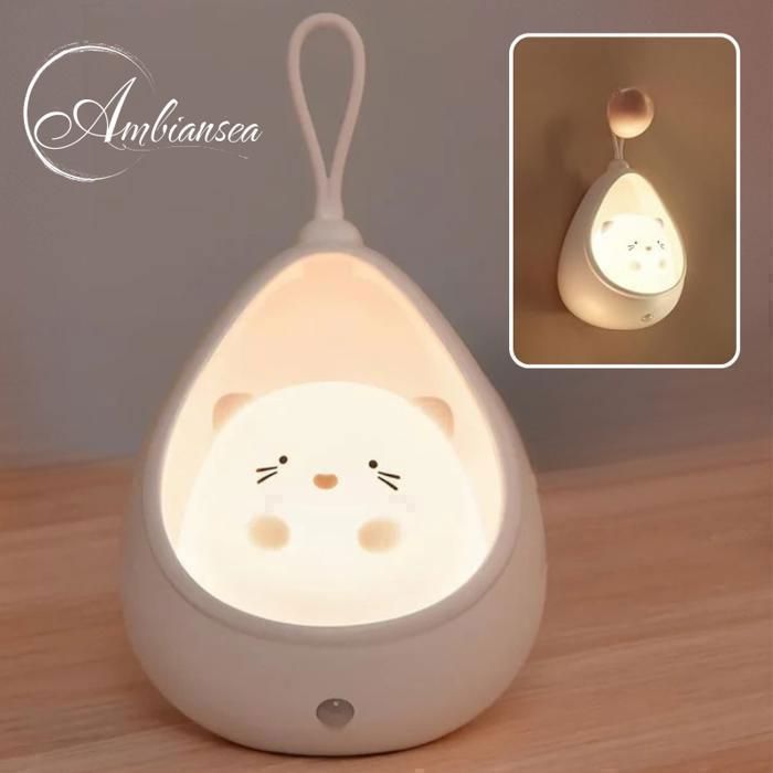 AMBIANSEA® Veilleuse lampe chat nomade Détecteur mouvements A suspendre ou poser Bébé Enfant Adulte Idée cadeau noël Anniversaire