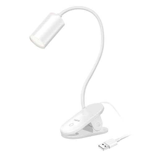 Diboniur Lampe de Bureau Pince, Lampe de Lecture LED Rechargeable, 360° Flexible, 3 Couleur et Intensité Réglables pour Étude et Travail, Luminosité Protection des Yeux, Blanc