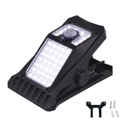 BEPER P207ILO003 Lampe solaire à pince, éclairage LED extérieur avec détecteur de mouvement, 3 modes d'éclairage, recharge solaire, IP65, pour jardin, clôtures et camping