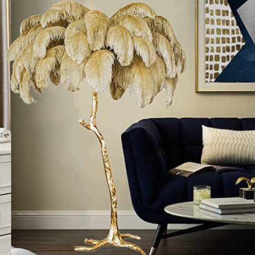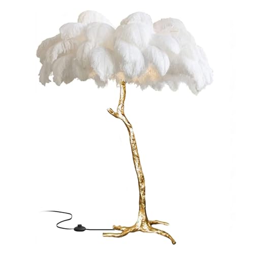 Lampadaire Plume D’Autruche, Lampadaires pour Salon, Lampadaire Or Chambre à Coucher, Lampe en Résine Véritable De Luxe Moderne, pour Chambre à Coucher, Salle à Manger, Salon