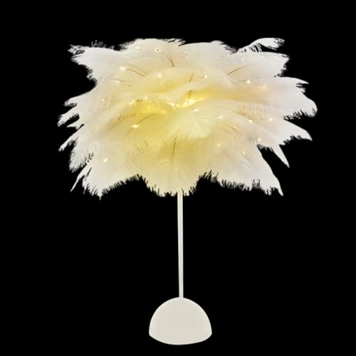 DUNMW Créatif Blanc Plume D'autruche Lampe De Table Lampe De Chevet Lumière Luxe Et Élégant Abat-Jour Veilleuse Éclairage De Table Pour Salon Chambre Décoration De La Maison, Rechargeable
