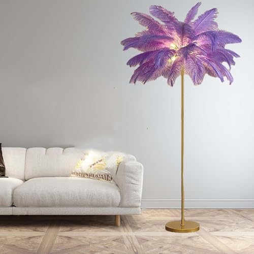 Plume D’Autruche Naturelle Lampe De Sol,63" Lampes De Plume Lampe sur Pied De Chambre Moderne,lampadaires De Plume éclairage De Salon pour Fille Chambre Decor, Purple