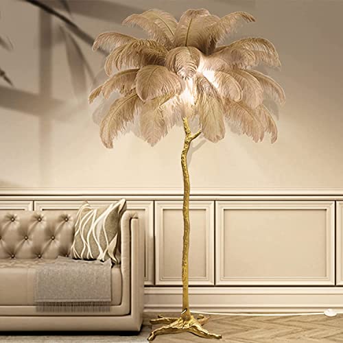 ANram Moderne Luxe Véritable Plume D'autruche Or Lampadaire En Métal Nordique Lampe Sur Pied Villa Repot Hôtel Décor Éclairage Romantique Princesse Chambre Chevet Lampadaire 160 cm