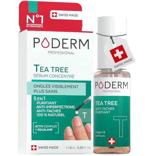Poderm 5 en 1 Sérum Activ Tea Tree | Soin Anti-Tâches & Réparateur pour Ongles Jaunis et Abîmés - 6 ML | Nourrit et Clarifie | Huile Essentielle 100% Naturelle | Développé par un Podologue en Suisse