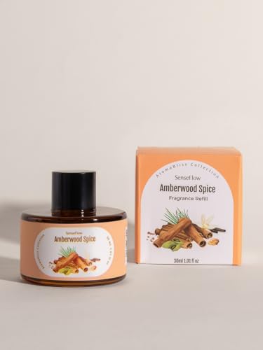 SenseFlow Huile Essentielle pour Diffuseur 30ml – Huile Parfumée pour Aromathérapie, Recharge pour Diffuseur SF101/SF101S, Maison, Bureau, Hôtel et Détente - Épices de Bois Ambré