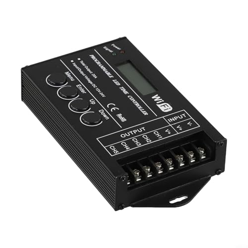HEIBTENY TC421 Contrôleur programmable RGB LED minuteur 5 canaux DC12-24V avec écran 3,6 cm pour bande lumineuse LED, lampe de croissance de plantes et boîte publicitaire, boîtier en alliage