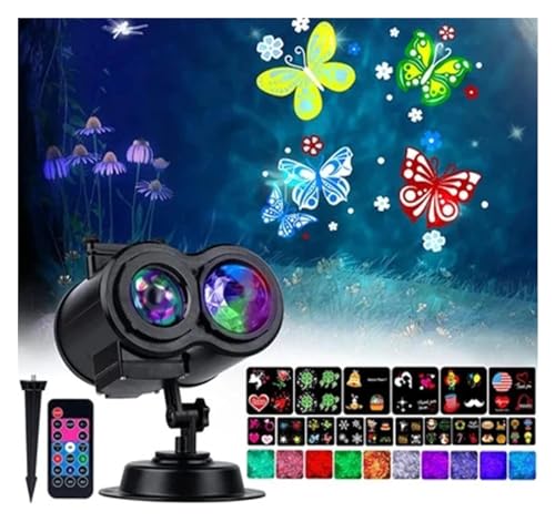 Lumières du projecteur Lampe projecteur LED à Double Cylindre avec Motif d'eau, 16 Motifs, décoration de Nouvel an et de noël, lumières de Cartes Lumineuses, Halloween et noël