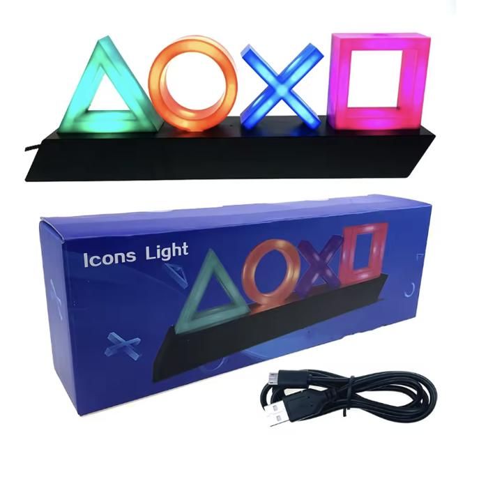 Lampe LED Icônes PlayStation Réactive à la Musique – Éclairage Décoratif Gaming PS4 / PS5 – USB – Multicolore