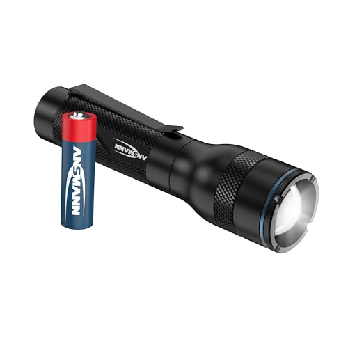 ANSMANN Lampe de poche M1500F (1 pce) – Petite lampe torche d'une puissance d'éclairage de 1500 lumens pour une portée de 240 m – Lampe LED puissante, piles LR6 incluses