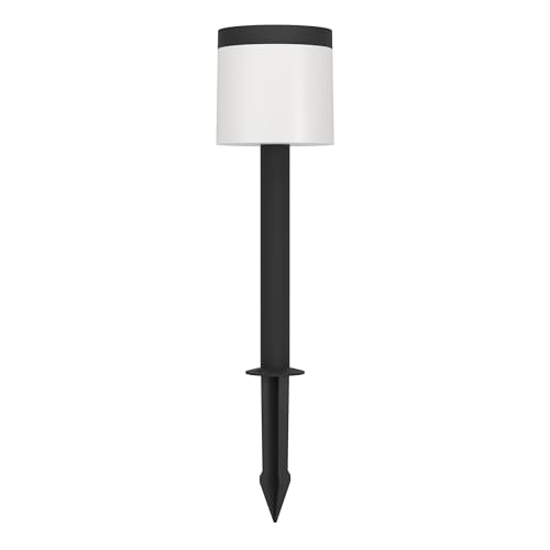 Eglo Lampdaire extérieur LED Pantete, lampe solaire puissante avec piquet de terre et détecteur de mouvement, éclairage d'extérieur, plastique noir et blanc, blanc chaud, IP44, 65 cm