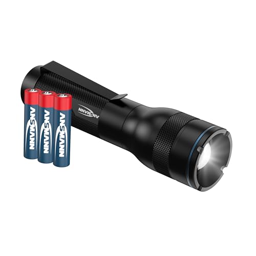 ANSMANN Lampe de poche LED Adventure, puissante lampe de poche robuste pour l'extérieur avec deux modes d'éclairage jusqu'à 110 lm, alimentée par piles, très claire, idéale pour le camping