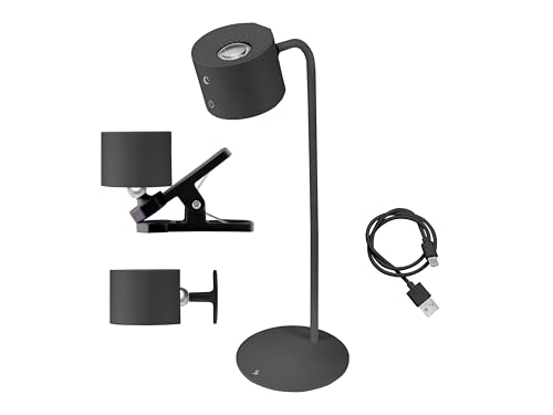 BEPER P201UTP304 Lampe Luminì à 3 fonctions, Lampe de table, lampe avec clip et accessoire mural inclus, Lampe rechargeable avec câble USB inclus, Interrupteur tactile, Lumière réglable, Noir