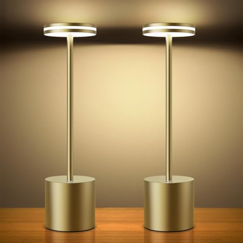 Hapfish Lampe de chevet tactile sans fil LED, 5000mAh 2 PCS lampe de table rechargeable usb, lumiere bureau puissante piles, 3 températures de couleur, pour chevet, bureau, restaurant, exterieur