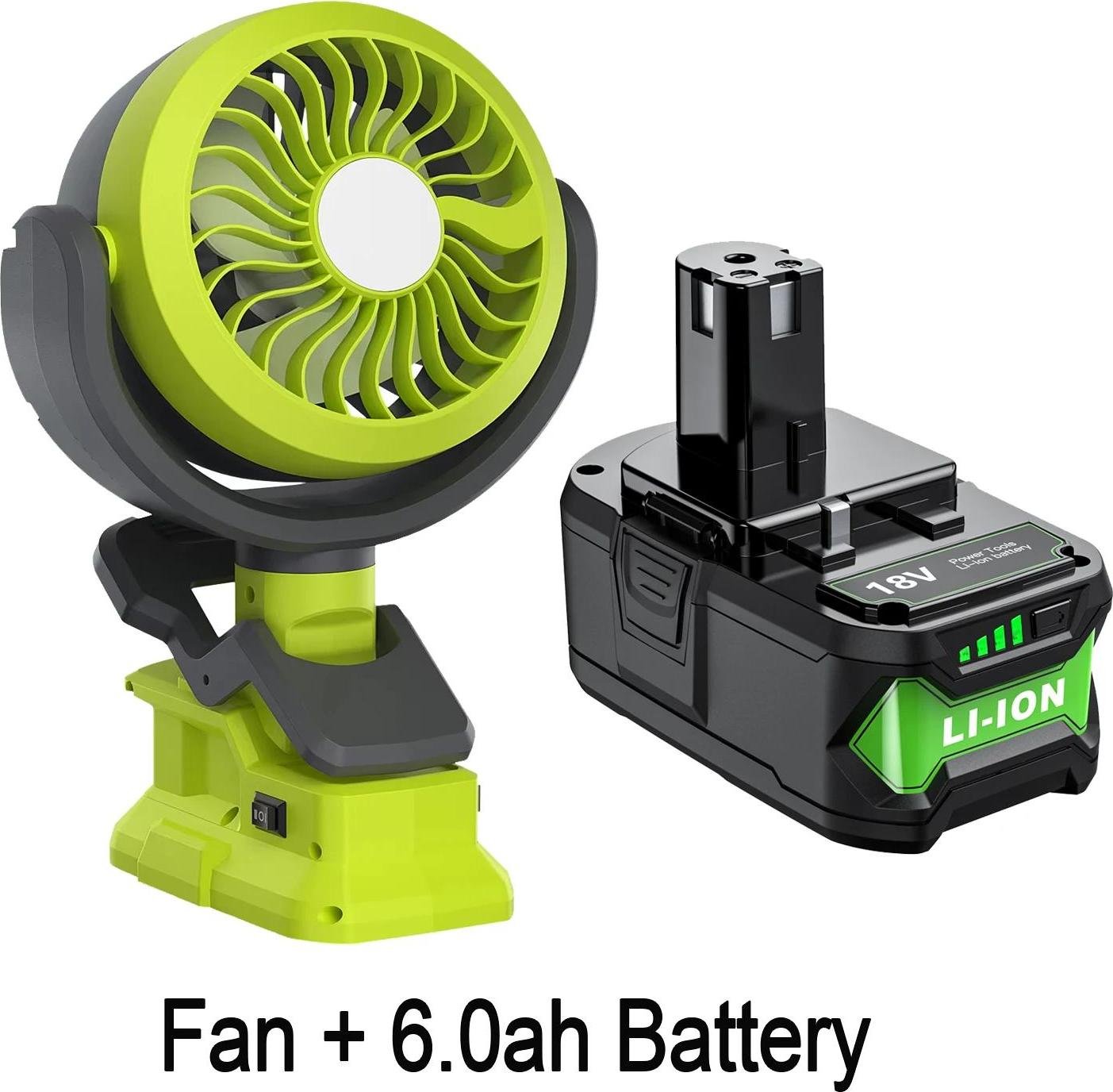 Ventilateur portable pour batterie Ryobi 18V ONE+, ventilateur 2 en 1 & lampe LED, 2 vitesses, beige, compatible avec P108, sans fil pour le camping