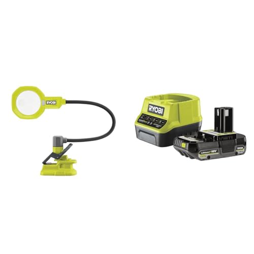 Ryobi - Lampe à pince avec corps flexible 18V - 400 Lumens - corps flexible 40 cm - 2 modes- 1 batterie 2Ah et 1 chargeur rapide