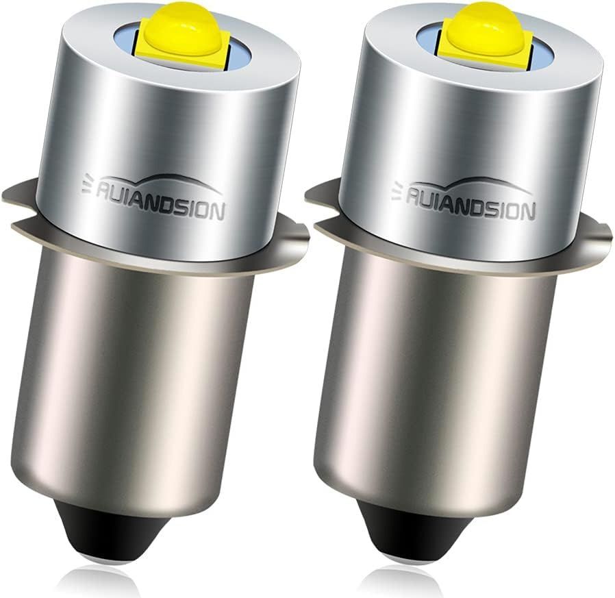Ruiandsion Lot de 2 ampoules LED P13.5S 6-24 V 6 V 9 V 12 V 18 V 19,2 V de rechange pour lampe de poche Ryobi Milwaukee DEWALT Lampe de poche, lampe de travail, sans polarité