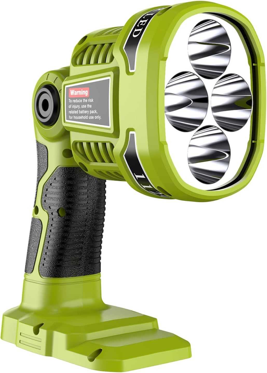 18V Tools Lampe LED Portable Extérieur Longue Portée Projecteur 18W 2000LM Lampe de Travail LED sans Fil Compatible avec Ryobi ONE+ 14.4V-18V Li-ion Ni-Cd Ni-Mh Batterie P107 P108
