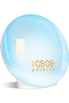 Eveil Lumière avec LED Réveil Lumineux Lampe Radio FM Simulateur Daube7 Sons Naturel 256 RGB couleurs