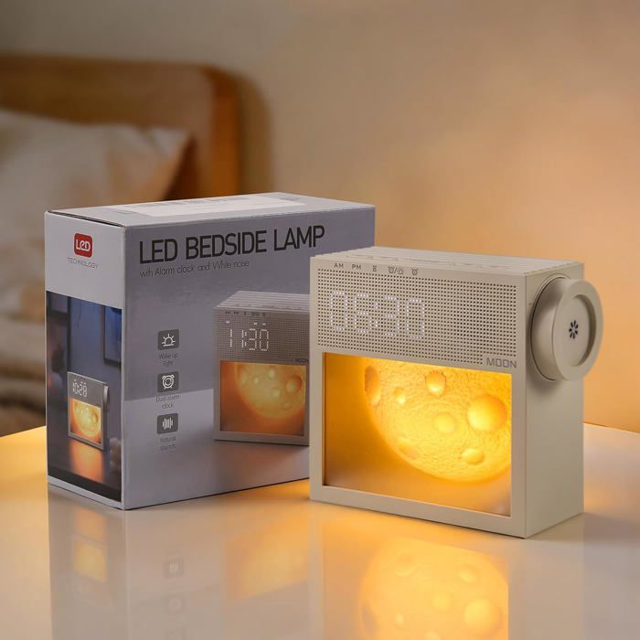 Réveil simulateur daube avec lampe de chevet lune et 20 sons de bruit blanc naturel réveil numérique avec lumière réveil lumineux