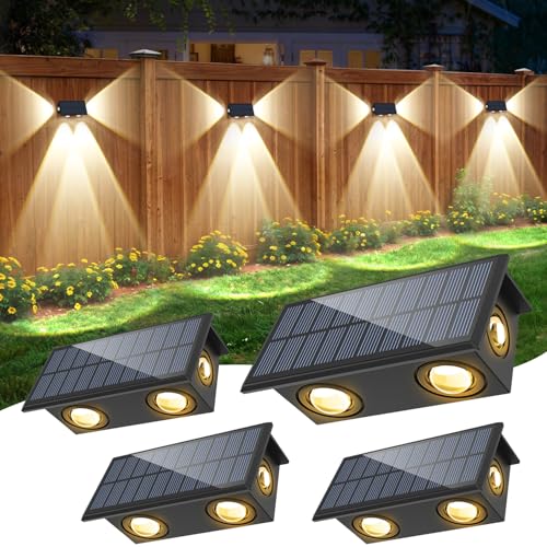 NATPOW Applique Murale Extérieur Solaire, Applique Murale Blanc Froid avec 4 LEDs, Lampe Exterieur Solaire Jardin Puissante, IP65 Étanche pour Clôture, Escaliers, Balcon, 4 Pièces