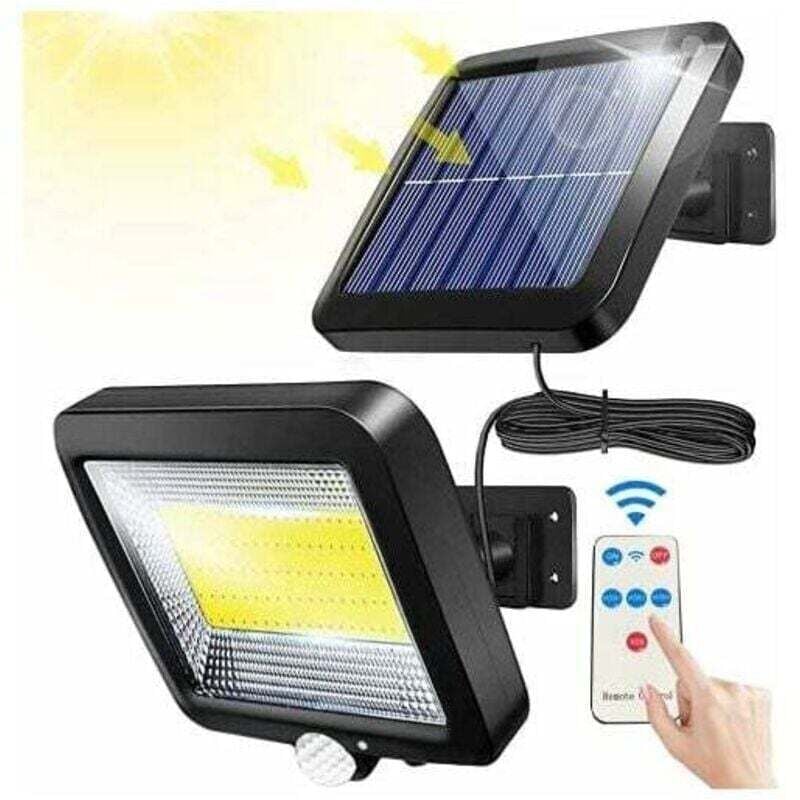 Lampe Solaire Extérieur, Lumière Solaire, avec Telecommande, Détecteur de Mouvement étanche, 100 led Lampe Solaire Extérieur Puissante Étanche IPX65