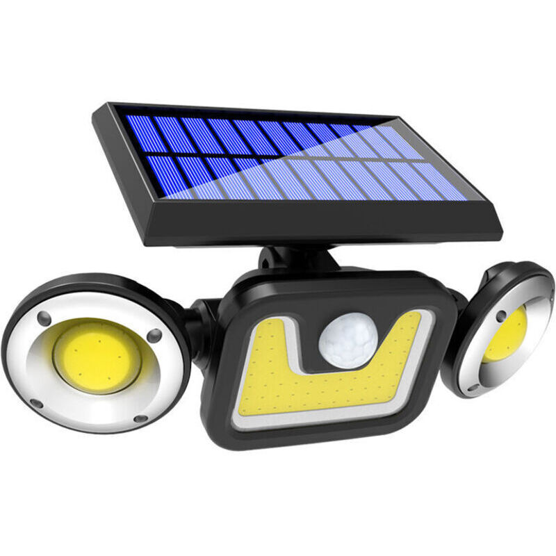 Lampe de Sécurité Solaire Extérieur Puissante 1200LM, Projecteur Extérieure avec Détecteur de Mouvement PIR, 3 Têtes, IP65 Étanche Solaire éclairage