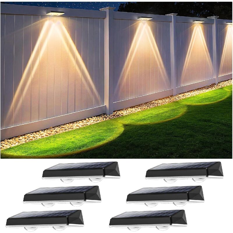 Applique Murale Extérieur Solaire Étanche IP67, 6 Unité Lumiere Solaire Exterieur Blanc avec 3 Modes Lampe Solaire Exterieur Puissante pour Cour,