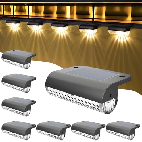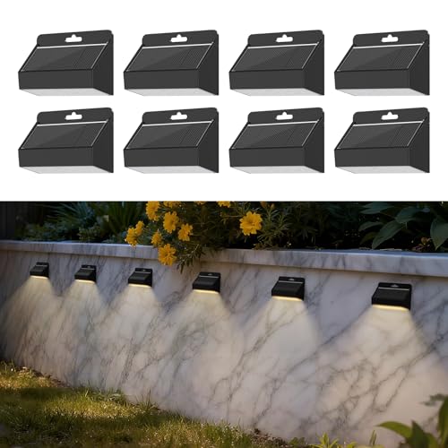 Smiling Shark Lampe Solaire Exterieur, 8 Pièces LED Applique Murale Exterieur Solaire IP65 Étanche Lumières de Clôture Solaires pour Jardin Clôture Escaliers Marches Cour Terrasse, Blanc Chaud