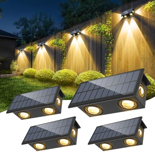 NATPOW Applique Murale Extérieur Solaire, Applique Murale Blanc Froid avec 4 LEDs, Lampe Exterieur Solaire Jardin Puissante, IP65 Étanche pour Clôture, Escaliers, Balcon, 4 Pièces