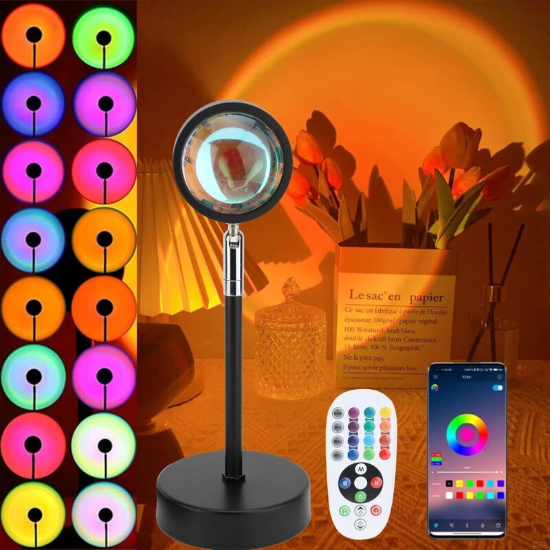 Lampe coucher de soleil LED – Projecteur USB avec 9 couleurs changeantes – Ambiance romantique pour chambre et salon
