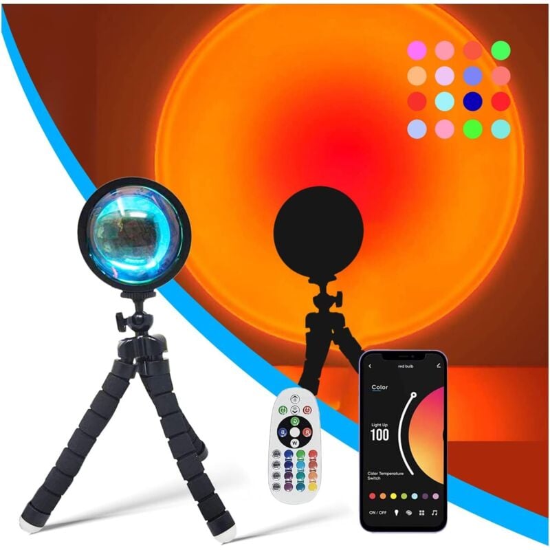 Kangtaixin Lampe Coucher de Soleil - Sunset Lamp Multicolore à LED Commande par Bouton et Application, Rotation à 360 Degrés pour Chambre, Photographie, Fête, Tiktok Live, Décoration de Pièce