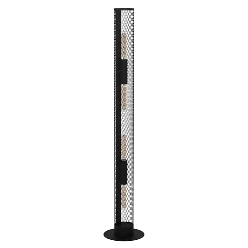 Eglo Lampadaire Eldrick, lampe de salon sur pied, luminaire intérieur rectangulaire, design vintage industriel, métal noir, douille E27, H 100 cm