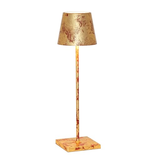 Zafferano, Lampe Poldina Pro, Lampe de Table Rechargeable et Sans Fil avec Contrôle Tactile, Lampe d'Intérieur, Dimmer 2200-3000 K, Hauteur 38 cm, Couleur Rouge - Feuille d'Or Craquelè