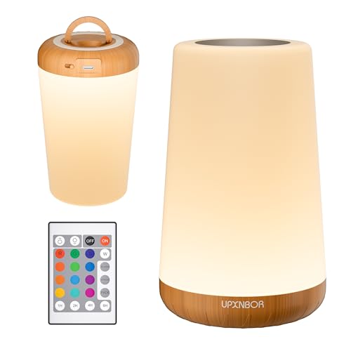UPXNBOR Veilleuse LED, Lampe de Chevet Tactile avec Télécommande, Lumière Réglable, 13 Couleurs RGB, 5 Niveaux de Luminosité, Crochet, Rechargeable par USB, Lampe Portable pour Chambre et Salon