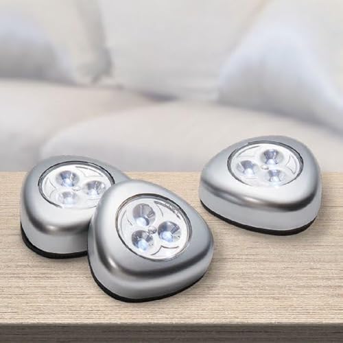 Grundig Lot de 5 spots LED - Éclairage d'armoire - Lampe tactile - Fonctionne avec piles - Autocollant - Plastique - Argenté