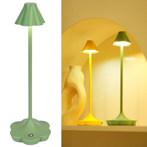 LuminexDesigns Lampe de Table LED Sans Fil Verts – Rechargeable Lampe de Chevet Tactile Dimmable, Design Moderne Élégant et Minimaliste en Métal, pour Chambre, Salon, Jardin, Dîner, Extérieur, Cadeaux