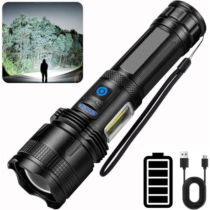Lampe Torche Led Ultra Puissante-100000 Lumens Lampe De Poche Rechargeable,Étanche Ipx7,7 Modes D'Éclairage Avec Lumière Cob Pour Camping,Randonnée Et Urgences