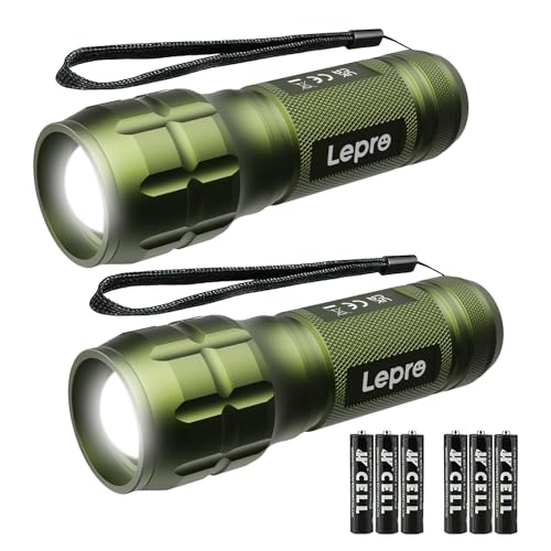 Lighting EVER Lepro Lampe Torche L8000 Puissante, Lampe de Poche Zoomable Étanche IPX4, 6 AAA Piles Compris, Design Compact pour Camping, Randonnée, Urgences, Promener un Chien, Lot de 2