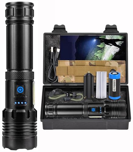 Jayxinli Lampe Torche LED Ultra Puissante - 1000000 Lumens de Poche Rechargeable Étanche IPX7 7 Modes D'éclairage avec Lumière COB pour Camping Randonnée et Urgences