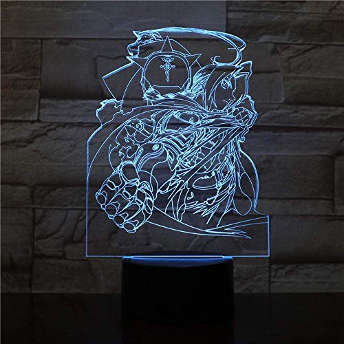 KJsdaADSA 3D Illusion lampe LED veilleuse Edward Elric USB bébé garçons enfants bébé cadeaux japonais Anime Fullmetal Alchemist chevet néon lampe de table anniversaire vacances cadeaux
