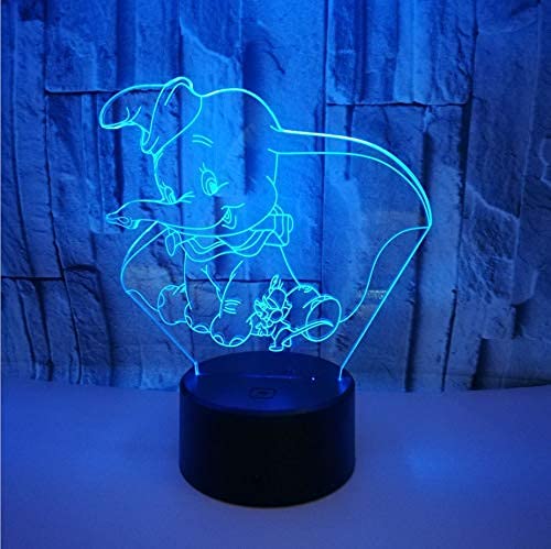 KJsdaADSA 3D Illusion lampe LED veilleuse éléphant Dumbo mignon bébé lune lumière 16 couleur changeante décoration intérieure enfants fille garçons enfant cadeau