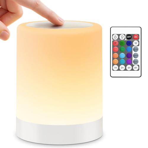 Auxmir Lampe de Chevet, Veilleuse LED avec 256 Couleur RVB, Lampe Ambiance sans Fil avec Minuteur, Veilleuse Allaitement Nuit Tactile, 3000mAh Rechargeable USB pour Chambre Enfant, Salon, Camping
