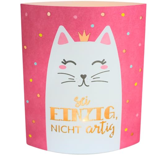 Dekohelden24 Lampe poésie - Veilleuse - Lumière d'ambiance - Lumière décorative en rose - Avec minuterie - Fonctionne avec piles - Motif : chat - Soyez unique, pas artificiel - L/l/H 13 x 5 x 16 cm.